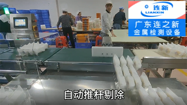 廣東連之新自動重量選別機(jī)現(xiàn)場使用圖片,重量超輕或超重都能自動選擇剔除。